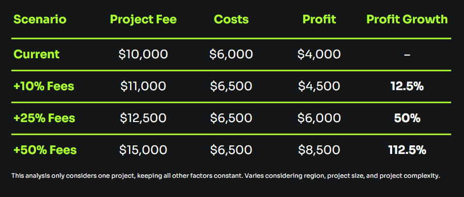 Without these, it could take years to achieve a 50% fee increase. With them, you can do it on your very next project.
